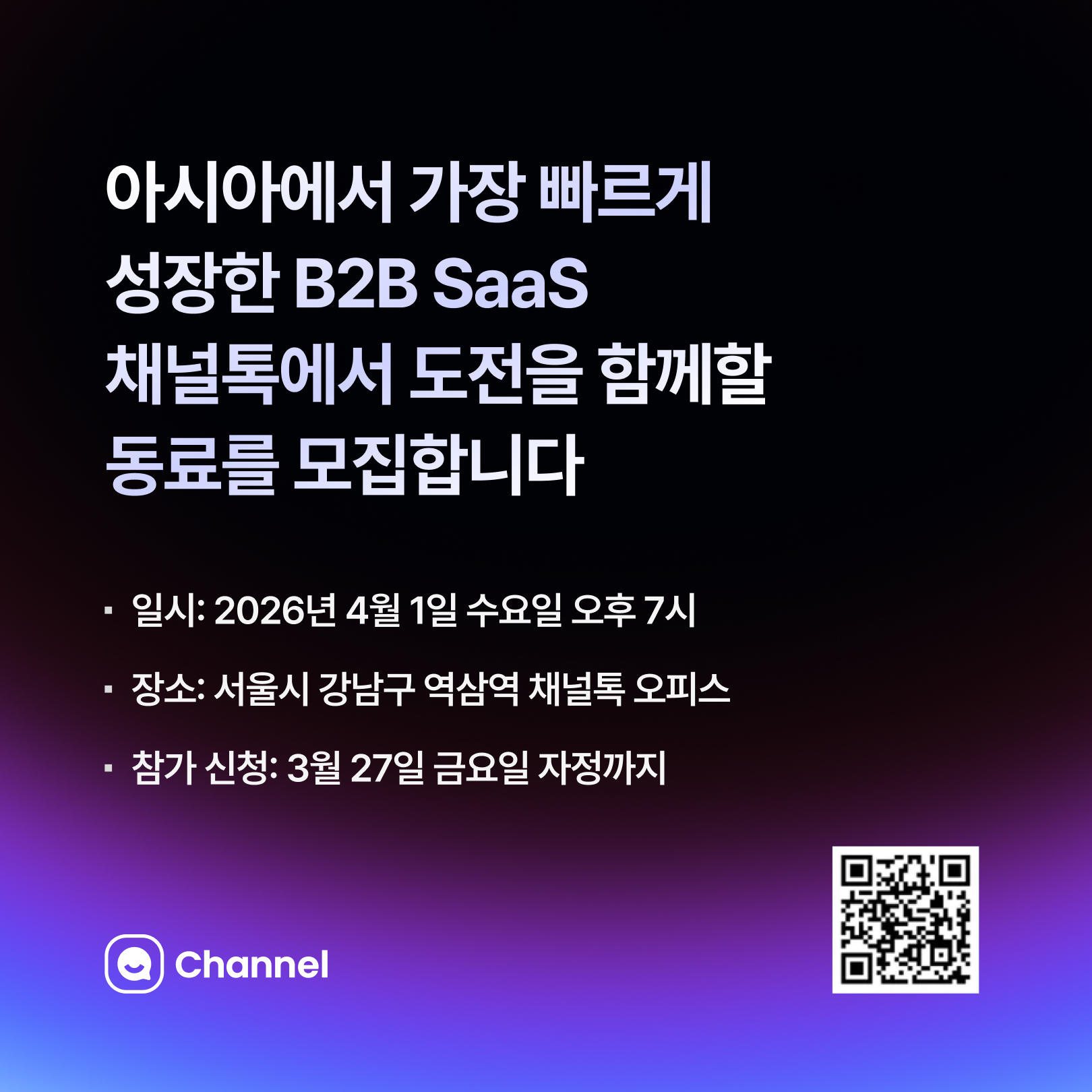 장소: 채널톡 오피스(서울시 강남구 논현로 508, GS 강남타워 8층)