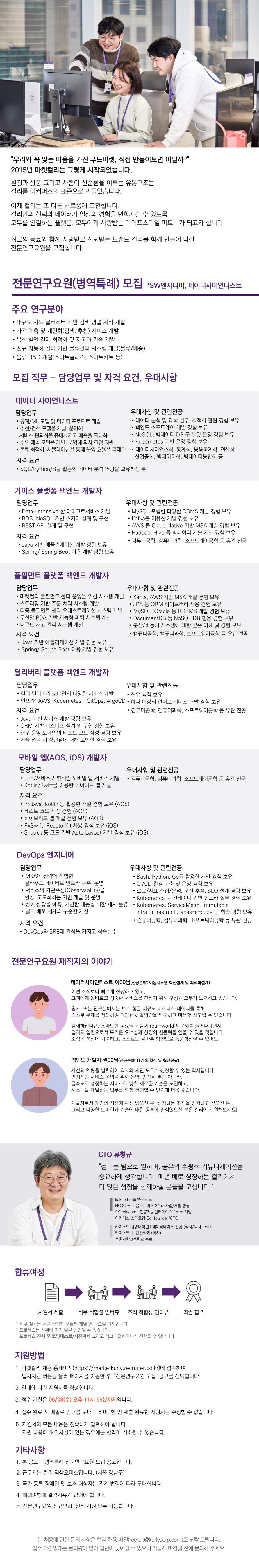 [마켓컬리] 전문연구요원(병역특례) 채용