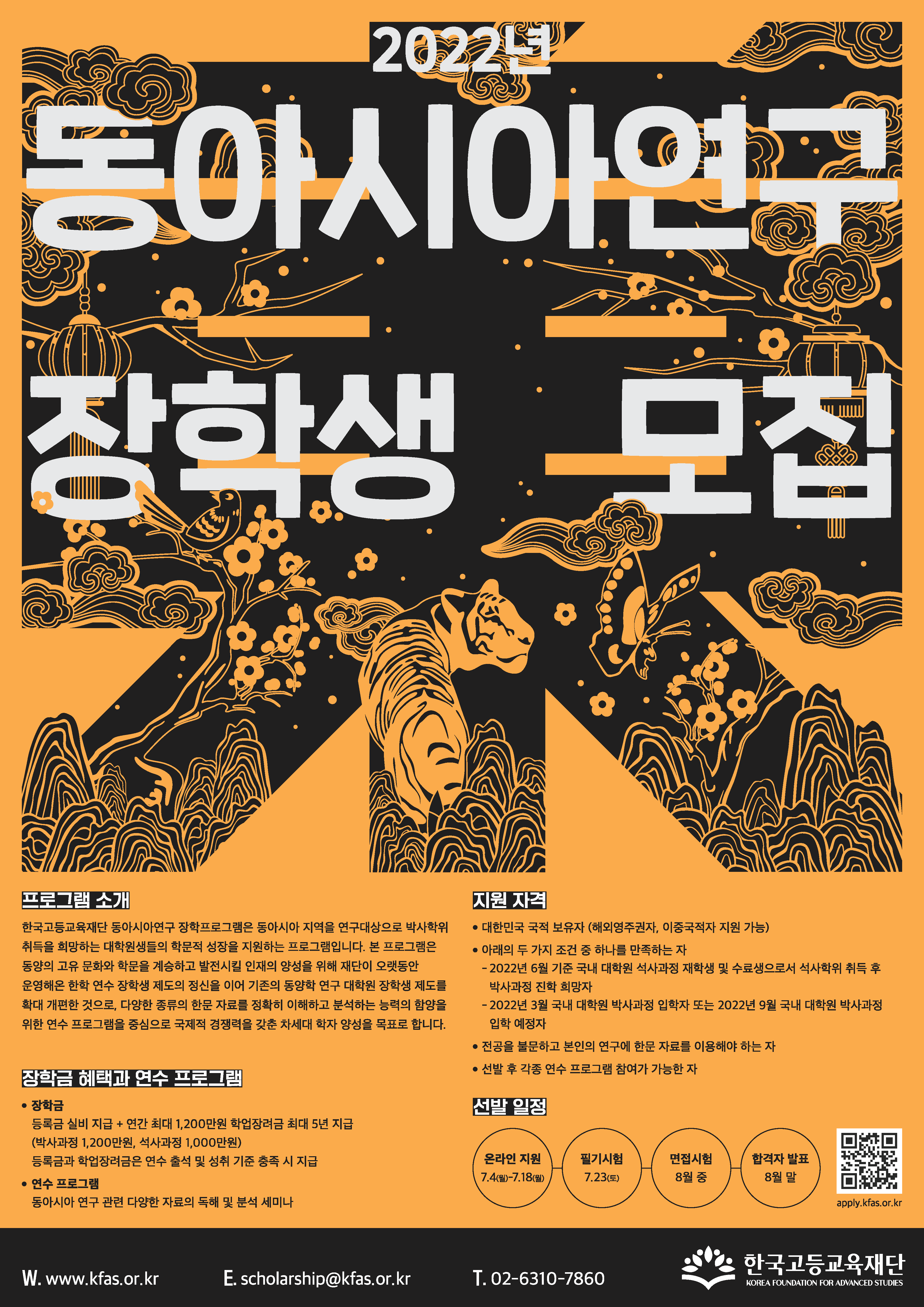한국고등교육재단 동아시아연구 장학프로그램 1기 장학생 모집