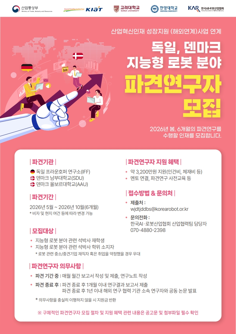 [KAR] 지능형로봇분야 독일, 덴마크 석박사 파견연구자 모집