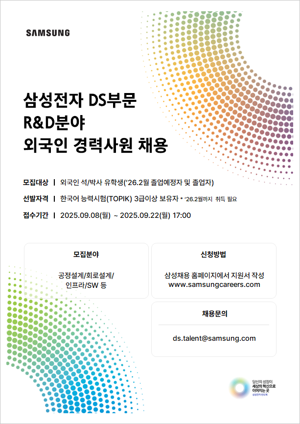 | [삼성전자 DS]'25년 하반기 외국인 유학생 경력사원 채용 | ||