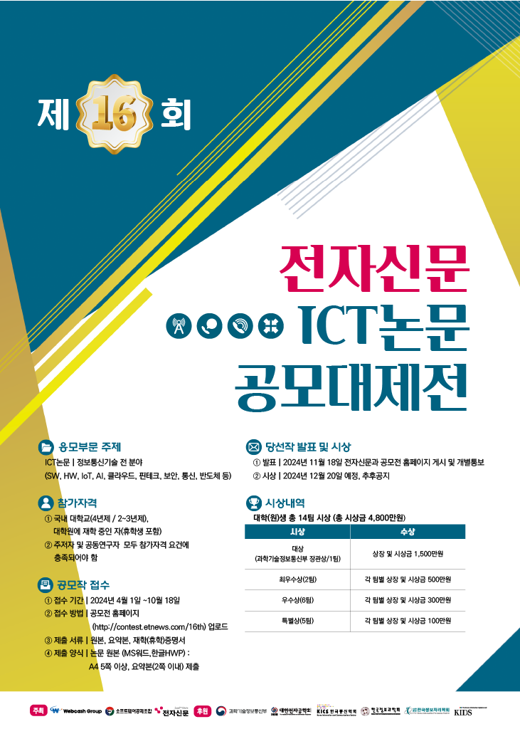 위해 '제 16회 전자신문 ICT논문 공모대제전‘을 다음과 같이 안내합니다.