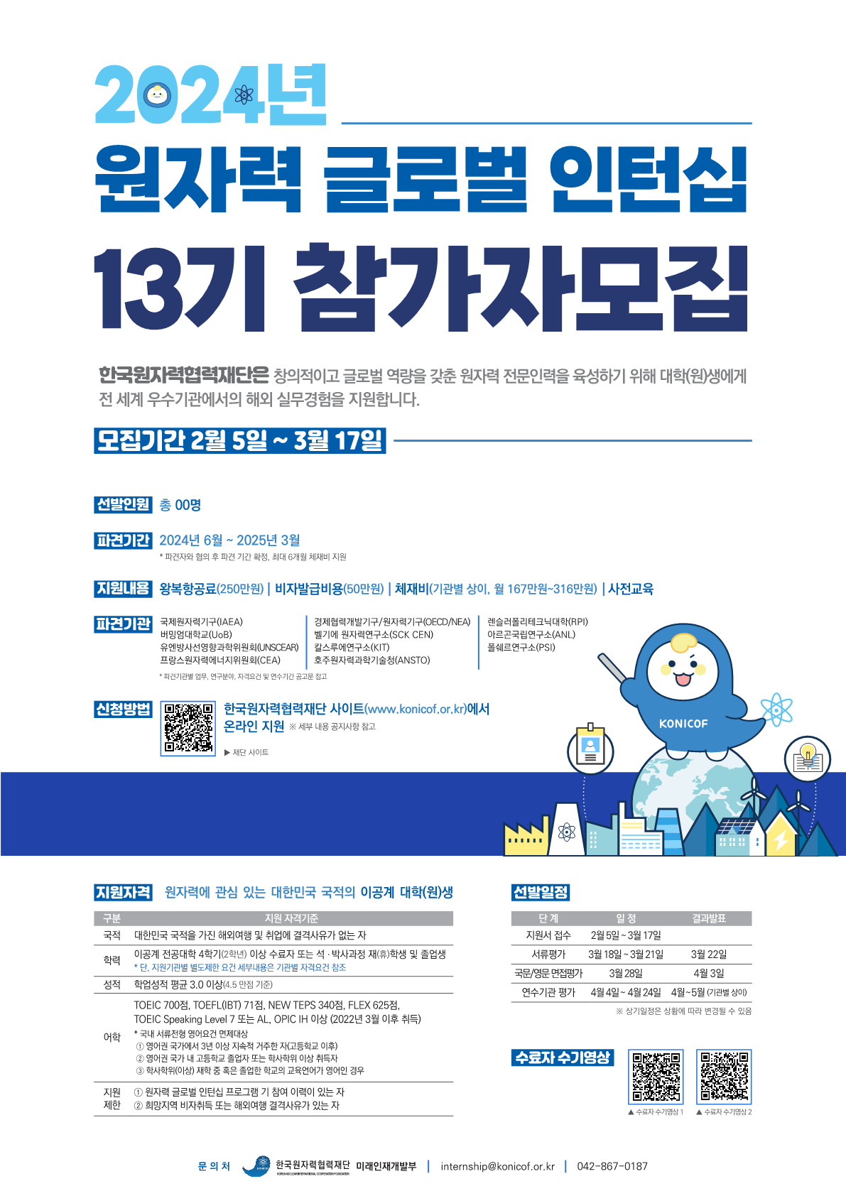 (링크 : "2024년 원자력 글로벌 인턴십 공고" / "홍보영상" 바로가기)