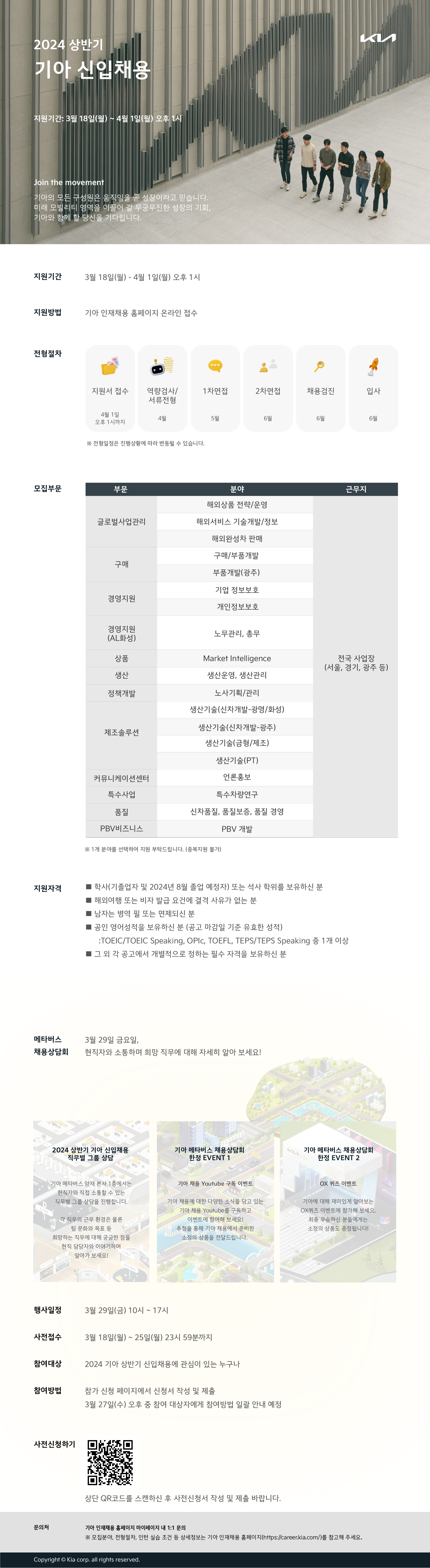 ✅ 참여대상 : 2024 기아 상반기 신입채용에 관심이 있는 누구나