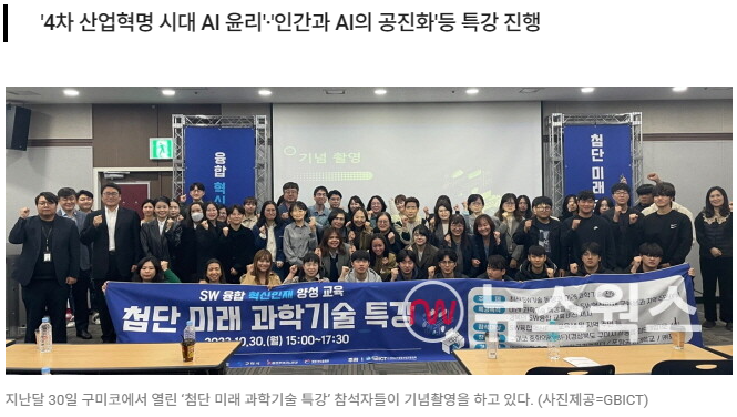 [뉴스웍스=이남정 기자] 경북ICT융합산업진흥협회(GBICT)는 지난달 30일 구미코에서 '첨단 미래 과학기술 특강'을 개최하고 최신 SW기술 동향과 미래 과학기술을 전망했다.