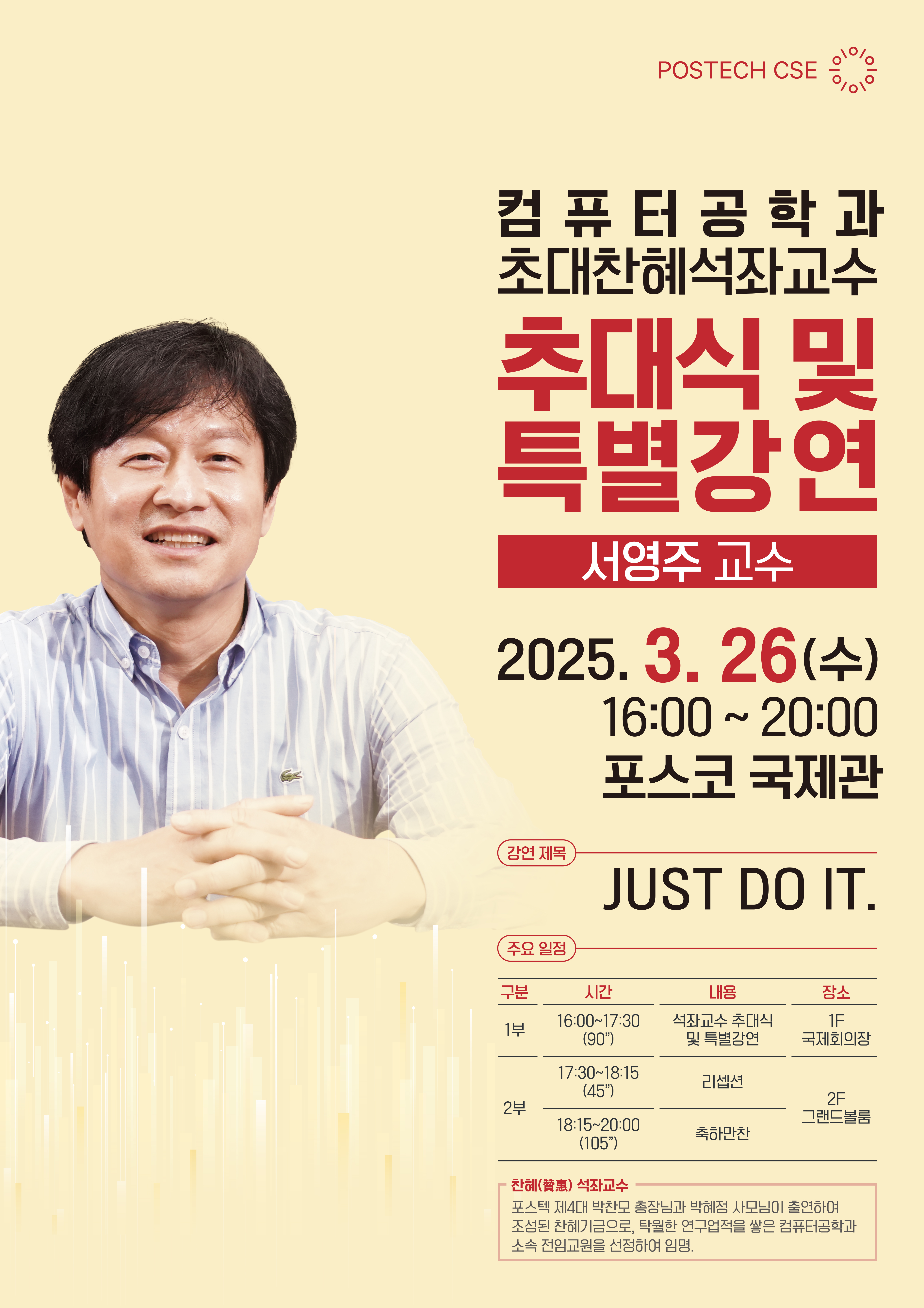 “초대 찬혜(贊惠) 석좌교수 추대식 및 특별강연”에 포스텍 구성원을 초대합니다.