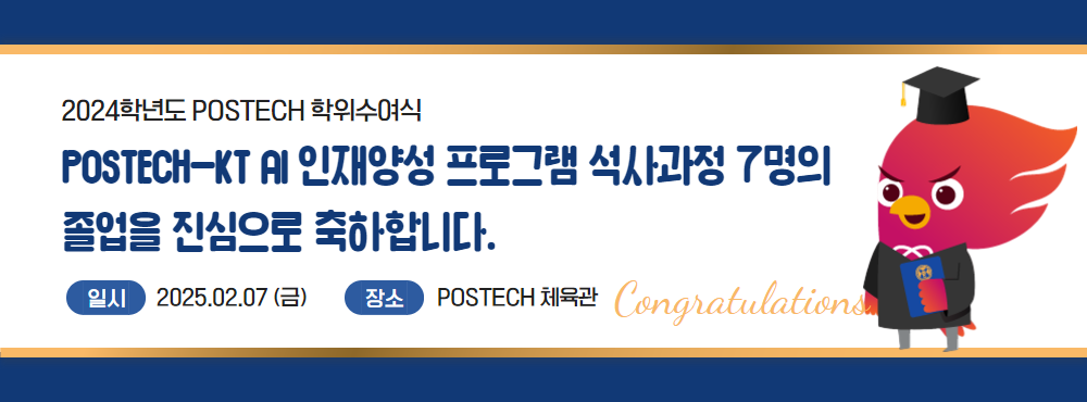 POSTECH에서 다져온 탄탄한 연구 역량을 바탕으로 KT에서 AI 혁신을 이끌어갈 졸업생들의 새로운 도전을 응원합니다.