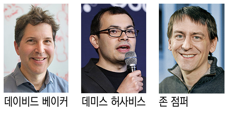 베이커 교수는 단백질 설계 모델을 만든 공로로, 구글 딥마인드 팀은 AI로 수년이 걸리던 단백질 구조 예측을 몇 시간으로 줄여 지각변동을 일으킨 ‘알파폴드’ 개발 공로를 인정받았다. 허사비스 CEO는 이세돌 9단을 꺾은 ‘알파고’의 개발자이기도 하다. 노벨위원회는 “단백질이 어떻게 작동하는지 이해하려면 어떻게 생겼는지 알아야 한다”며 “올해 수상자들은 여기에 엄청난 업적을 쌓았다”고 평가했다.