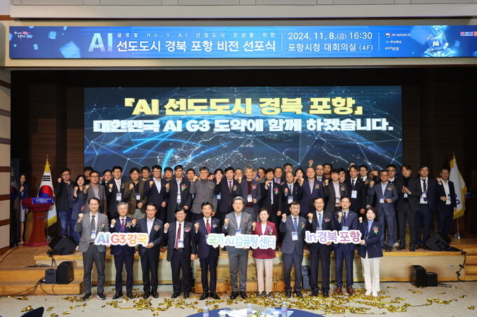 지난 8일 포항시청 대회의실에서 포항시, 과학기술정보통신부, 경북도, 지역대학, 유관기관 관계자와 기업체 대표 등이 참여한 가운데 ‘AI 선도 도시 경북 포항 비전 선포식’이 개최됐다.