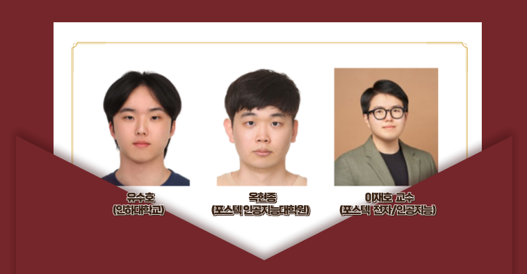 - 저자 : 옥현종(포스텍 인공지능대학원), 유수호(인하대학교), 이재호(지도교수, 포스텍 전자/인공지능)