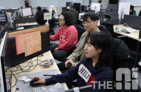 ▲ 포항공대 AI대학원 연구실에서 재학생들이 AI 연구에 몰두하고 있다. /구아현 기자