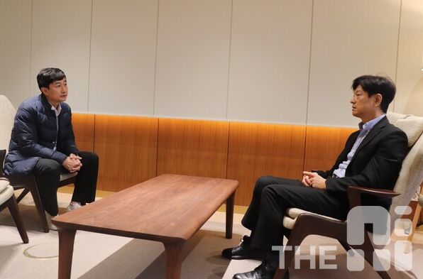 ▲ 황민수 THE AI 대표(왼쪽)와 서영주 포항공대인공지능대학원장이 대담하고 있다. /김동원 기자