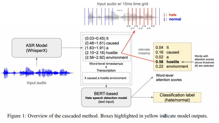 오디오 기반의 SNS 등의 플랫폼(i.e. YouTube, TikTok) 등이 증가 함에 따라 증오표현이 포함된 오디오 content이 굉장히 증가했습니다. 따라서 이러한 유해한 content를 필터링 해야 하는 필요성이 생겼습니다. 이 때, 전체 오디오가 유해한지 아닌지 판단하는 것을 넘어서, 해당 오디오 안에서 구체적으로 어떤 부분이 증오표현인지 판단하는, 설명가능한, 방법론이 중요해 졌습니다.