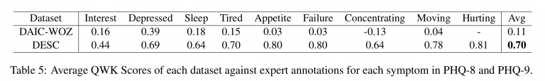 우리는 실제 임상에서 사용되는 우울증 선별검사 PHQ-9(Patient Health Questionnaire-9)를 기반으로 발화를 생성하는 LLM 프레임워크와, 의학적 의미를 유지하기 위한 필터링 프로토콜을 통해 새로운 데이터셋인 DESC를 합성했습니다. 전문 심리 상담사의 평가에 따르면, DESC는 기존 우울증 진단 데이터셋에 비해 우울증 진단 능력이 우수하며, 유창하고 일관된 대화의 품질을 유지하는 것으로 나타났습니다.