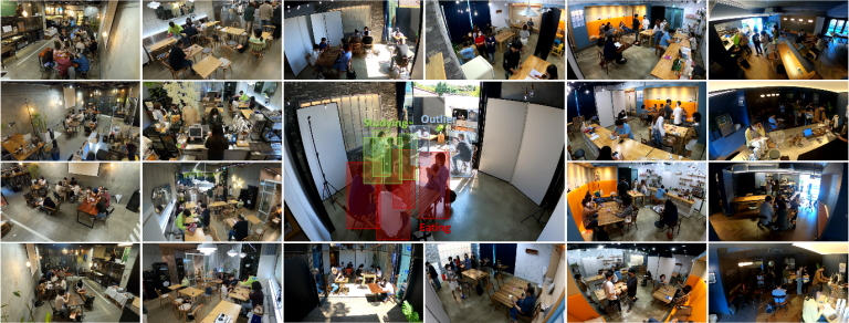 본 연구에서는 그룹 행동 탐지 문제를 위한 새로운 벤치마크 데이터셋 Café를 제안하였다. Café는 일상에서의 그룹 행동을 촬영하고 각 영상에서의 사람과 그룹을 레이블링 하여 그룹 행동 탐지를 위한 대규모 벤치마크를 구성했다. 추가적으로 해당 벤치마크에서의 학습을 위한 모델을 제안하였다. 학습된 임베딩 공간에서 그룹에 대한 임베딩과 그룹에 속하는 사람의 임베딩은 유사해야 하고, 그룹에 속하지 않는 사람의 임베딩은 멀어야 한다는 아이디어를 바탕으로 그룹을 구분하는 방법을 제안했다.