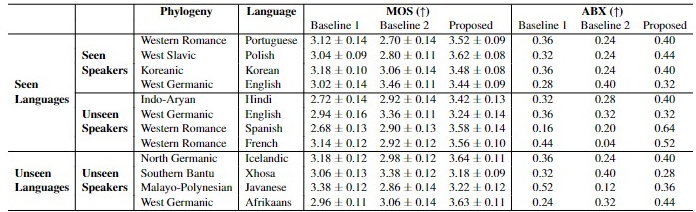 기본 음성합성 모델들이 생성하는 음성의 품질이 매우 자연스러워져서, 원하는 사람의 목소리로 음성을 합성하는 다중 화자 TTS 연구가 증가하고 있습니다. 그러나, 기존의 다중 화자 TTS는 특정 언어 내에서만 음성 합성이 가능하기 때문에, 학습 데이터와 다른 언어로 말하는 화자의 목소리를 따라하지 못하는 한계가 있습니다. 따라서, 본 연구에서는 이러한 unseen 언어로 말하는 화자에게도 해당 화자의 목소리로 음성 합성이 가능하도록 하는 방법을 탐색하였습니다.