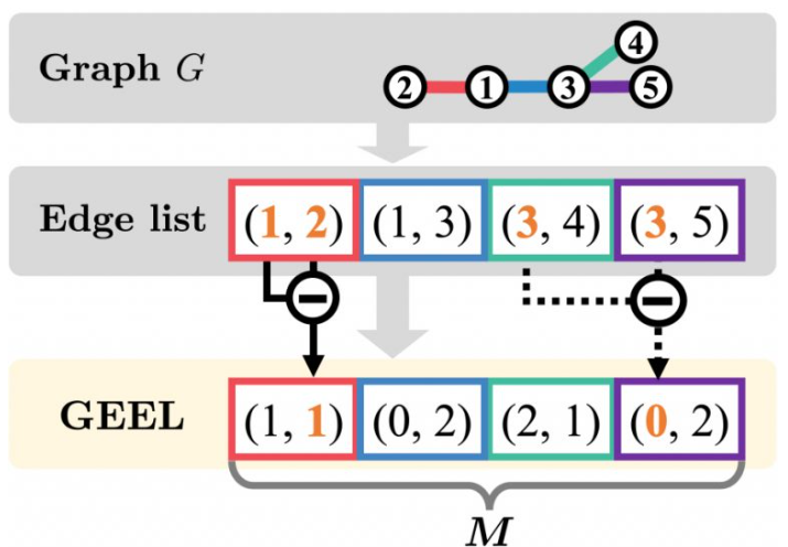 A simple and scalable representation for graph generation (GEEL): 그래프 bandwidth를 활용한 엣지 리스트를 그래프의 새로운 representation으로 제시하여 이를 autoregressive하게 생성하는 그래프 생성 모델을 개발하였다. 이를 통해 인접 행렬 기반의 representation보다는 생성 단계의 수를 줄여 더 빠른 생성이 가능하고, 기존의 엣지 리스트 기반 representation보다는 토큰의 종류를 줄여 더 적은 메모리만을 활용해도 생성이 가능하도록 하여 더 scalable한 그래프 생성 모델을 제시하였다.