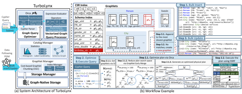 Lee, T., Ha, J., Tak, B., and Han, W., “TurboLynx: Schemaless Graph Engine Strikes Back for General-Purpose Analytics,” In 52nd Int’l Conf. on Very Large Data Bases (VLDB) / Proc. the VLDB Endowment (PVLDB), Vol. 19, No. 6, pp. 1250-1263, August 2026