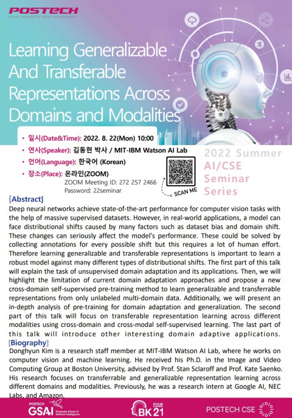 [인공지능대학원] 2022 Summer AI / CSE Seminar Series : 7) 8/22, 김동현 박사(M...