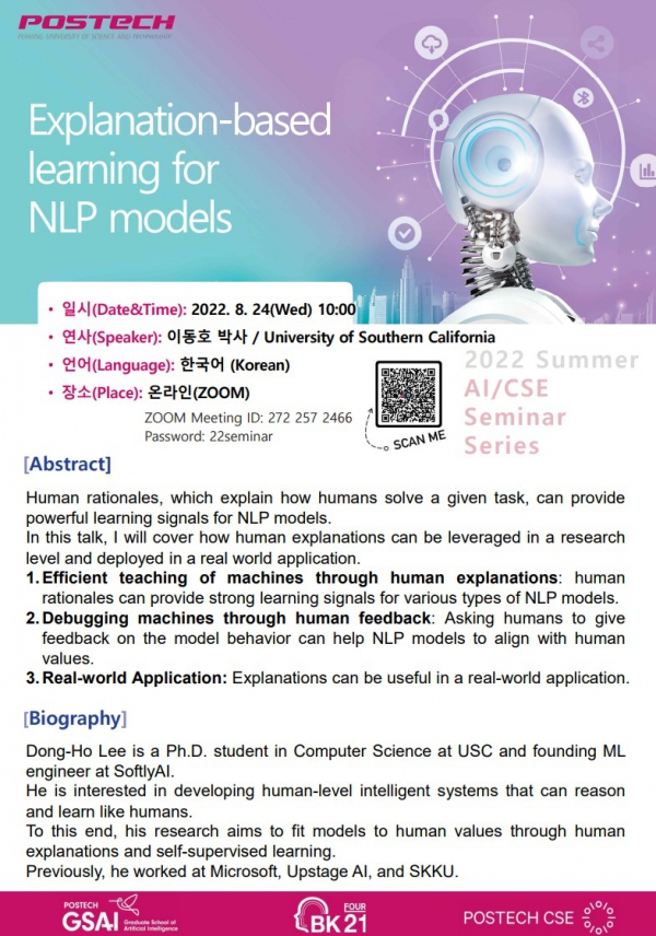 [인공지능대학원] 2022 Summer AI / CSE Seminar Series : 6) 8/24, 이동호 박사(...