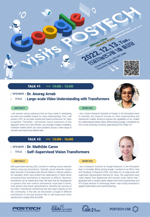 [인공지능대학원] 2022 Google visits POSTECH : 12/13, Dr. Anurag/ Dr. Mathilde...