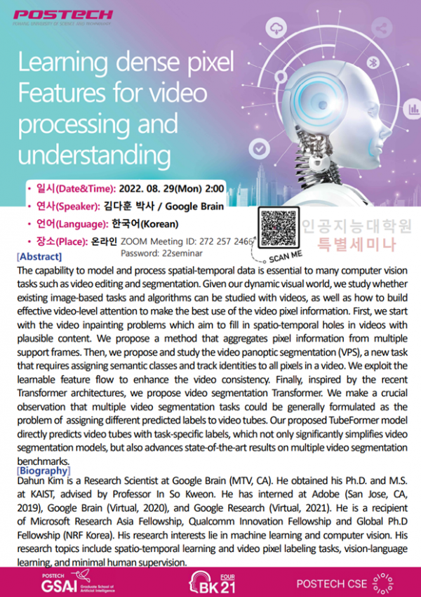 [인공지능대학원] 2022 Summer AI / CSE Seminar Series : 8) 8/29, 김다훈 박사(G...