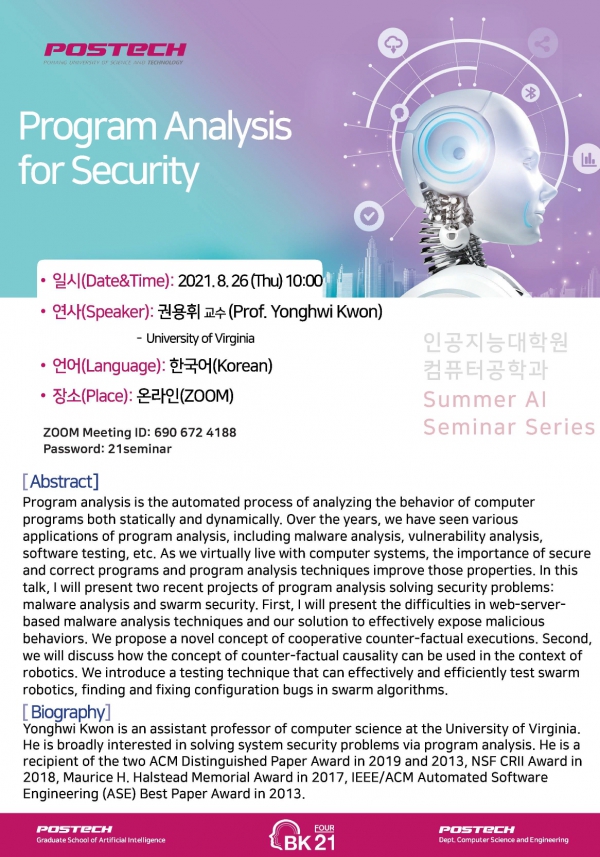 [인공지능대학원/컴퓨터공학과] Summer AI Seminar Series 개최 (권용휘 교수/Univ...