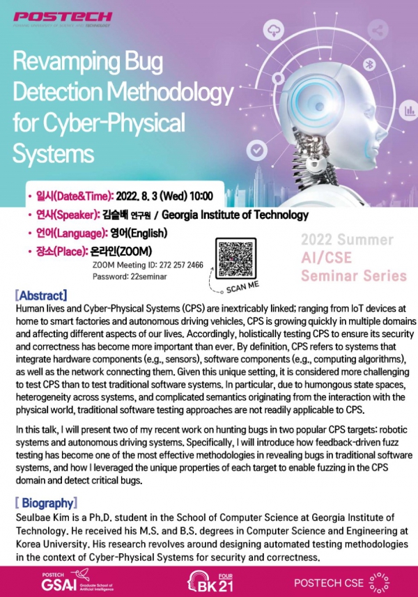 [인공지능대학원] 2022 Summer AI / CSE Seminar Series 개최 안내 (*전체 일정)
