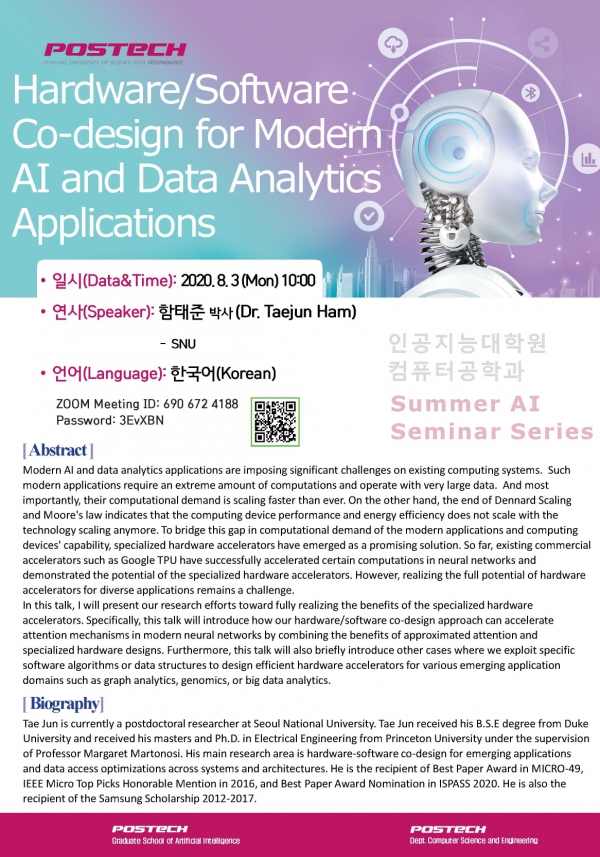 [인공지능대학원/컴퓨터공학과] Summer AI Seminar Series 세미나 안내(함태준 박...