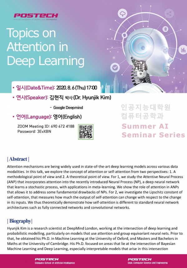 [인공지능대학원/컴퓨터공학과] Summer AI Seminar Series 세미나 안내(김현직 박...