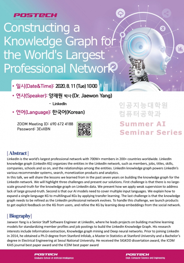 [인공지능대학원/컴퓨터공학과] Summer AI Seminar Series 세미나 안내(이장선 교...
