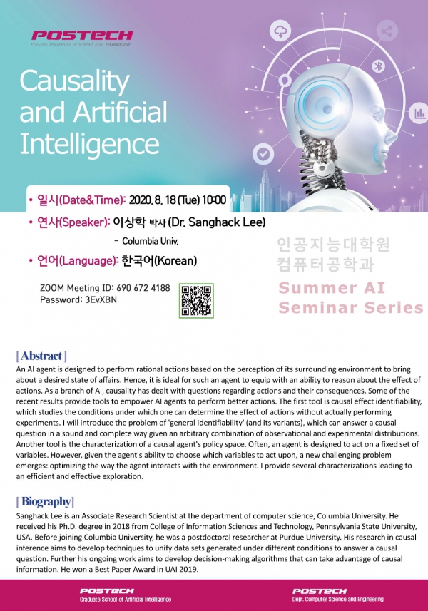 [인공지능대학원/컴퓨터공학과] Summer AI Seminar Series 세미나 안내(이상학 박...