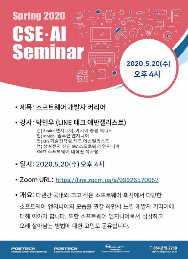 컴퓨터공학과 / 인공지능대학원 특별 세미나 박민우 (LINE 테크 에반젤리스트)
