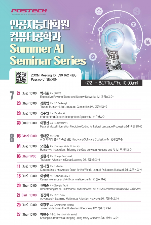 [인공지능대학원/컴퓨터공학과] Summer AI Seminar Series 세미나 안내