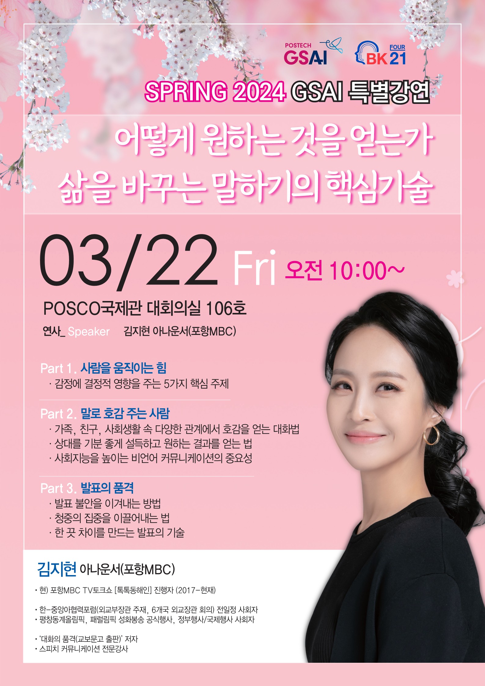 | 3/22(금) 10am, Spring 2024 GSAI 특별강연 안내_김지현 아나운서(포항MBC) | ||