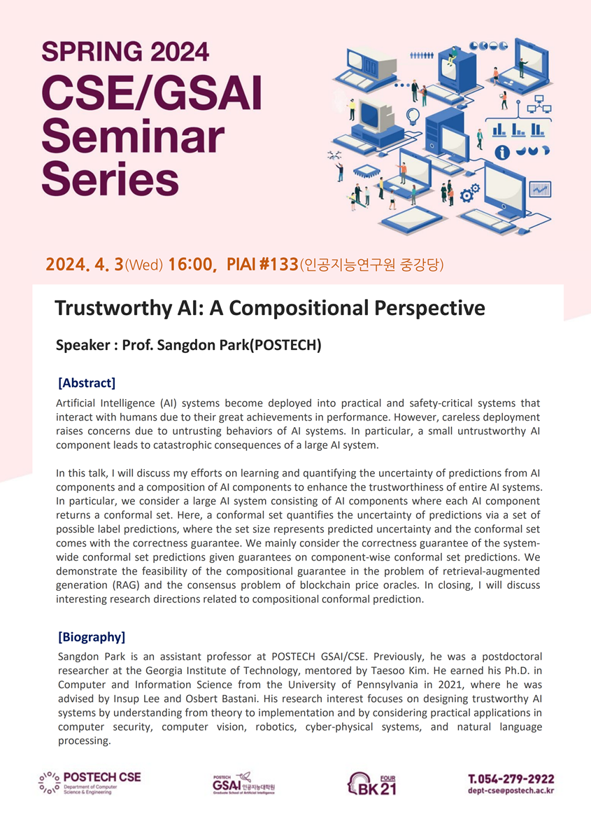 | 4/3(수) 4pm 2024-1학기 CSE/GSAI 정기 Seminar 안내_박상돈 교수(POSTECH) | ||