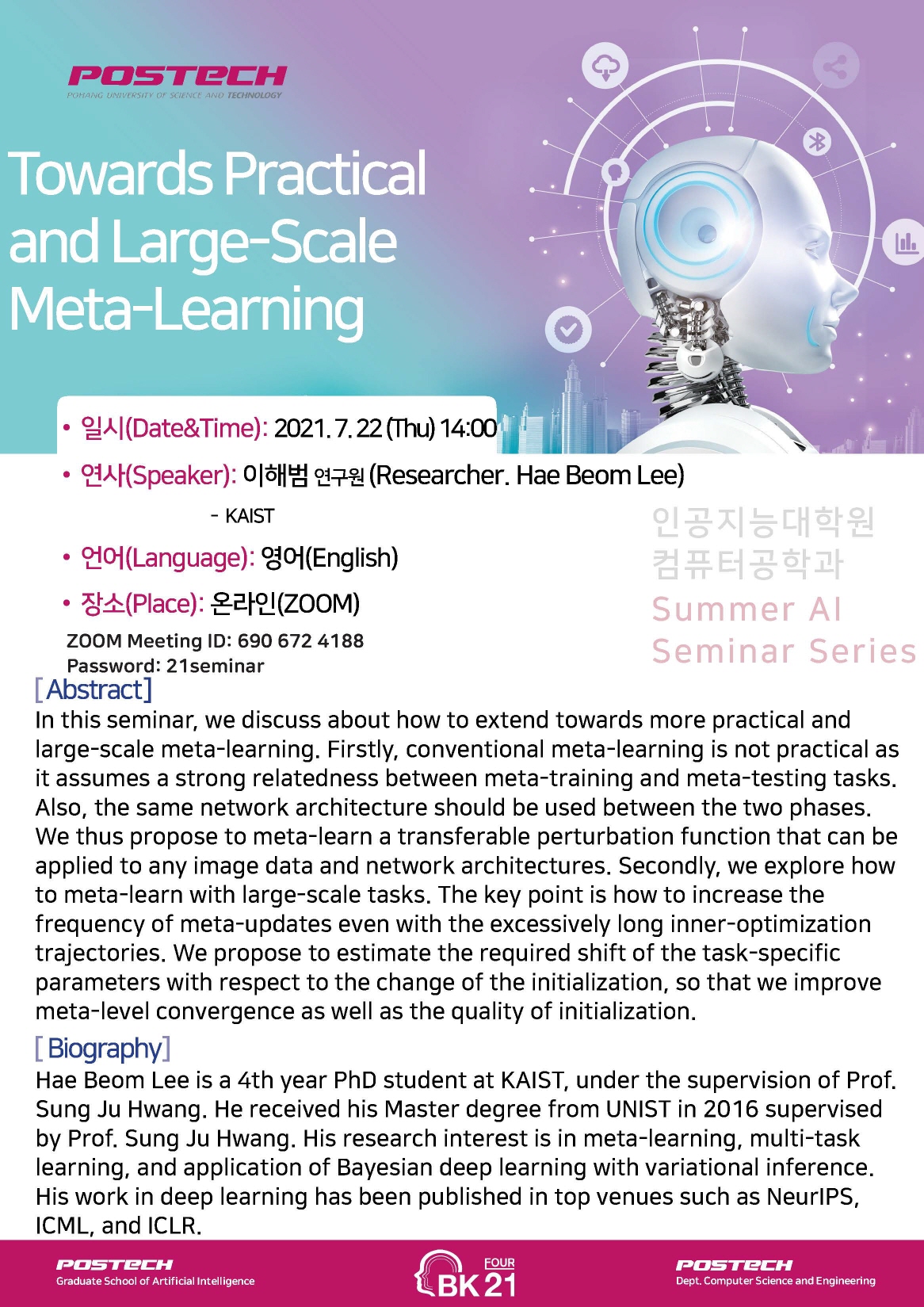 | [인공지능대학원/컴퓨터공학과] Summer AI Seminar Series 개최 (이해범 연구원/KAIST)_7/22(목) 14:00 | ||