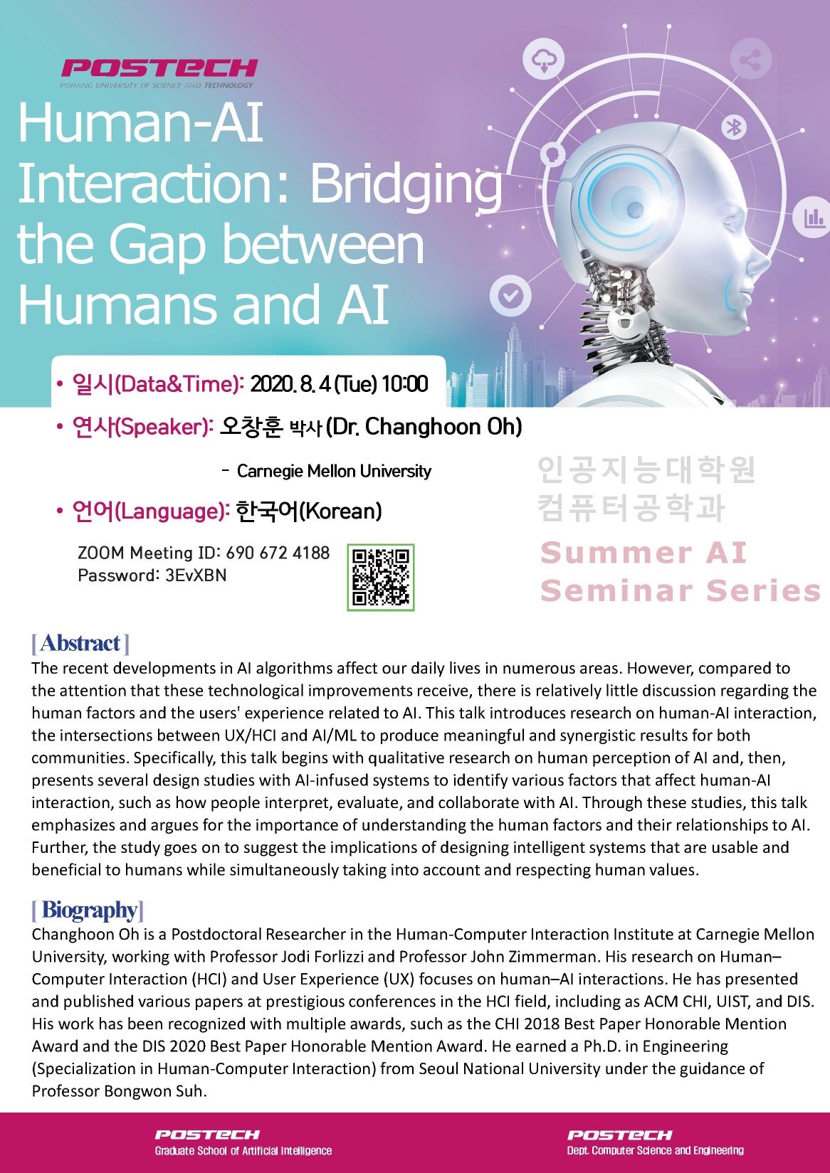 Summer AI Seminar Series를 온라인으로 개최하고자 하오니 많은 관심과 참여 바랍니다.
