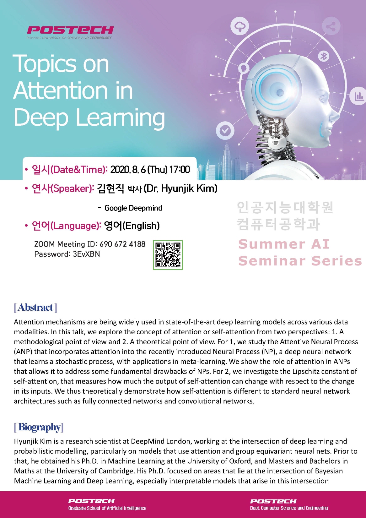 Summer AI Seminar Series를 온라인으로 개최하고자 하오니 많은 관심과 참여 바랍니다.