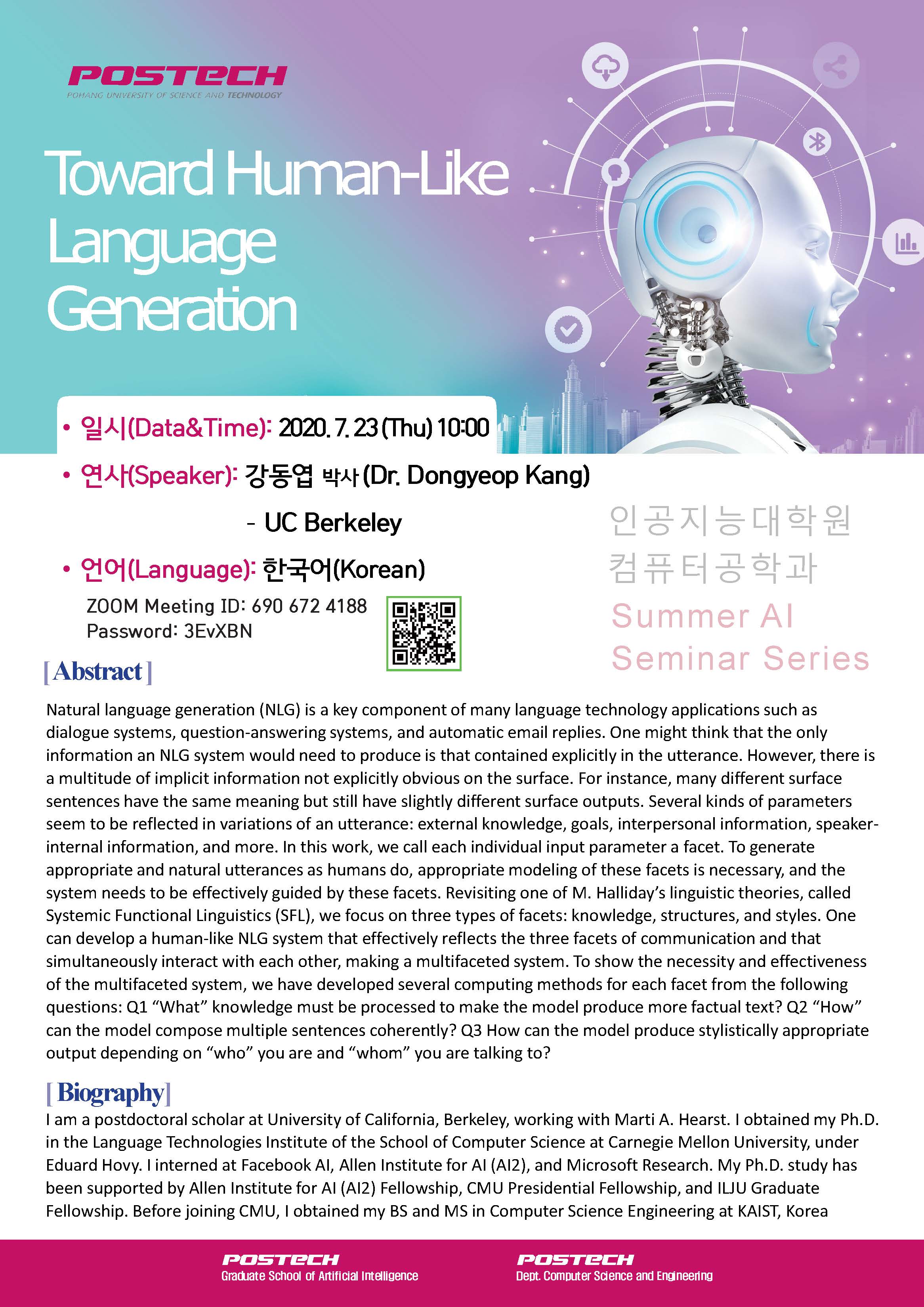 Summer AI Seminar Series를 온라인으로 개최하고자 하오니 많은 관심과 참여 바랍니다.